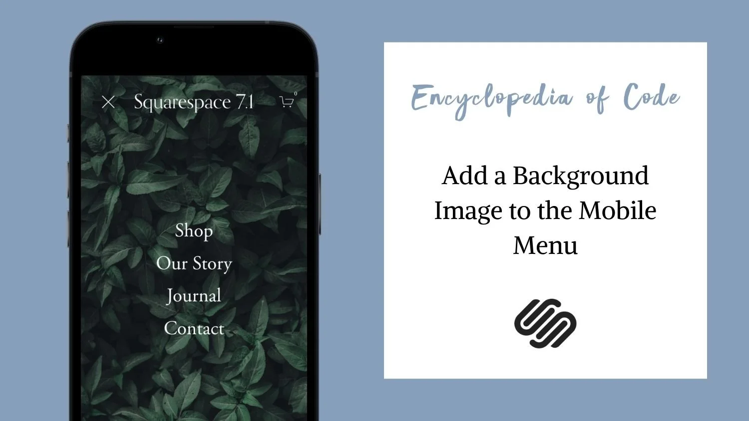 Prepare an image for the mobile menu. It should be a vertical image; I find a ratio of 9:16 works well. For example you could create an image that is 844px wide and 1500px long. Upload your image to Design > Custom CSS > Manage Custom Files.